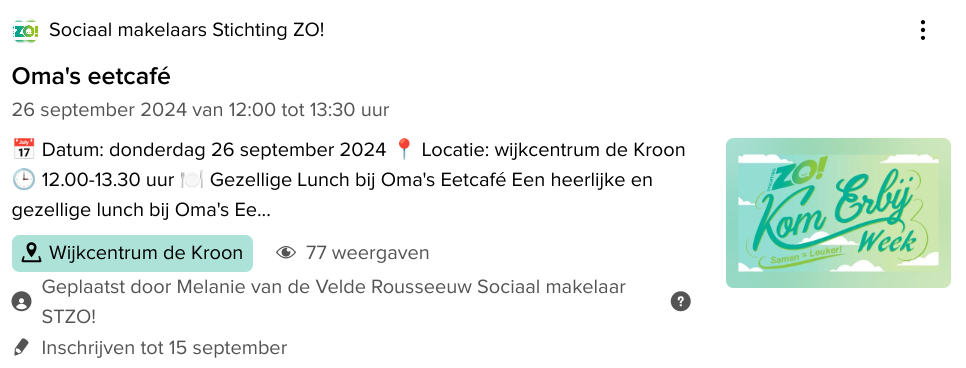 Als bezoeker van het platform zie je in de agenda allemaal leuke activiteiten. Om je in te schrijven, moet je wel even inloggen. Door je in te schrijven, laat je aan de organisator weten dat je er graag bij bent.